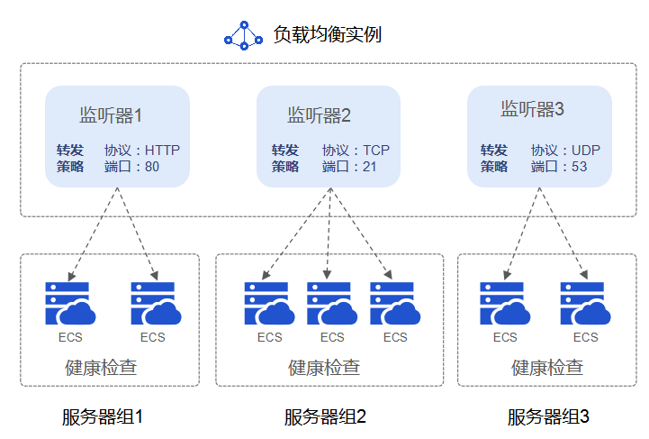 负载均衡通过监听器将流量分发到后端服务器。通过指定的协议和端口来监听来自客户端的连接请求,并根据您定义的转发策略将请求转发到一个后端服务器组里的服务器。您可以配置多个监听器,分别对应后端的一个应用服务。详细说明请参考“监听器简介”。