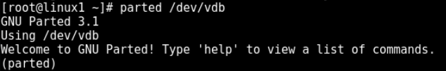 mkpart [磁盘分区名称] [起始磁柱值] [截止磁柱值] |