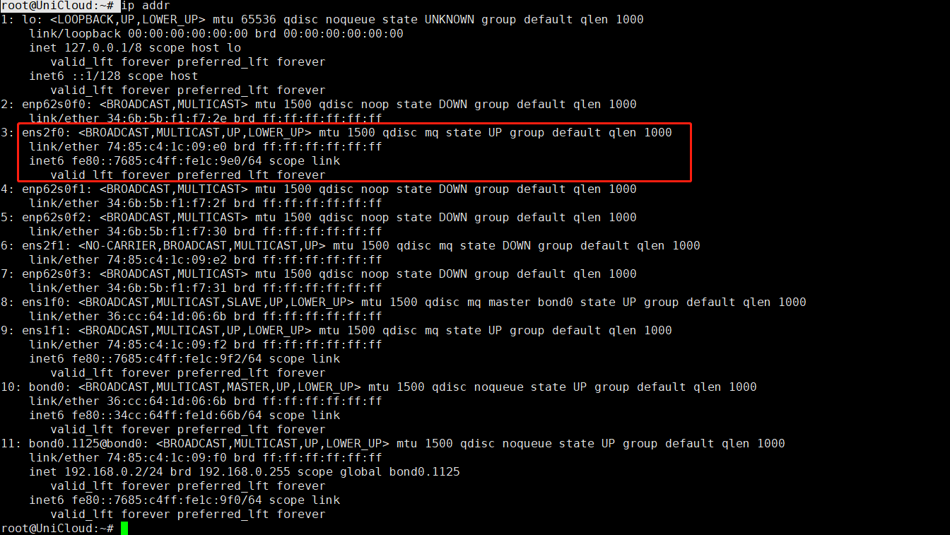定位当前使用的网卡,先使用ip addr命令查看当前网卡。