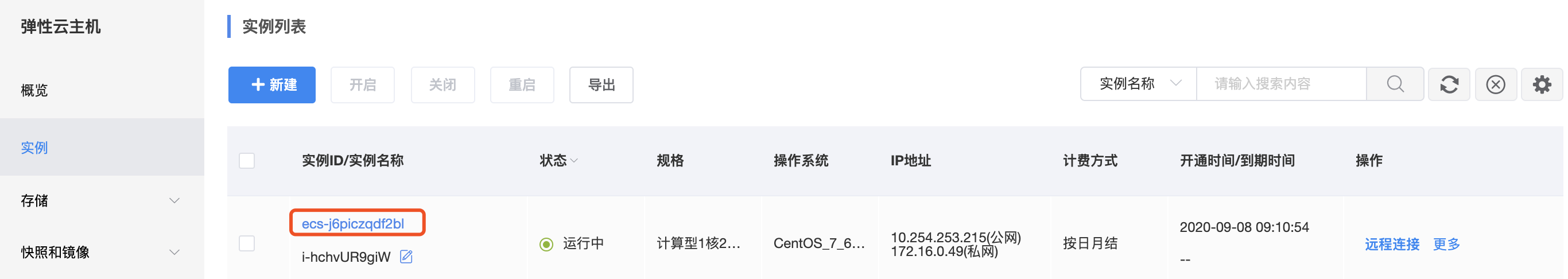 其中的“InstanceID”为主机实例ID,此ID可以在弹性云主机控制台查看,请您根据实际的信息做相应替换,后文不再提示。