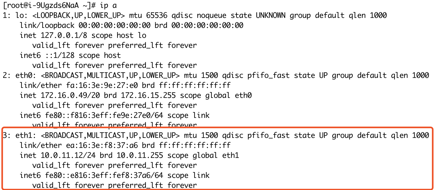 本示例中,新增网卡名称为eth1,请您根据实际的信息做相应替换,后文不再提示。