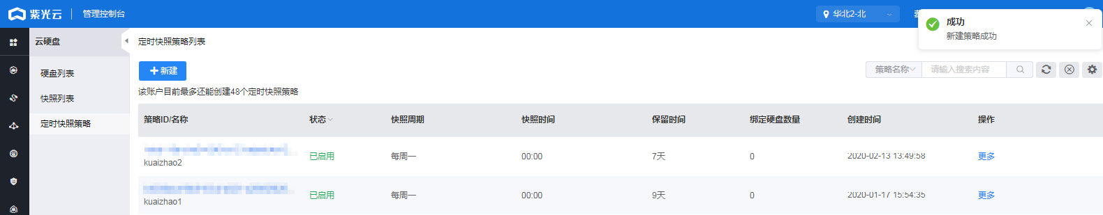 每个地域下每个用户最多可创建10个定时快照策略。