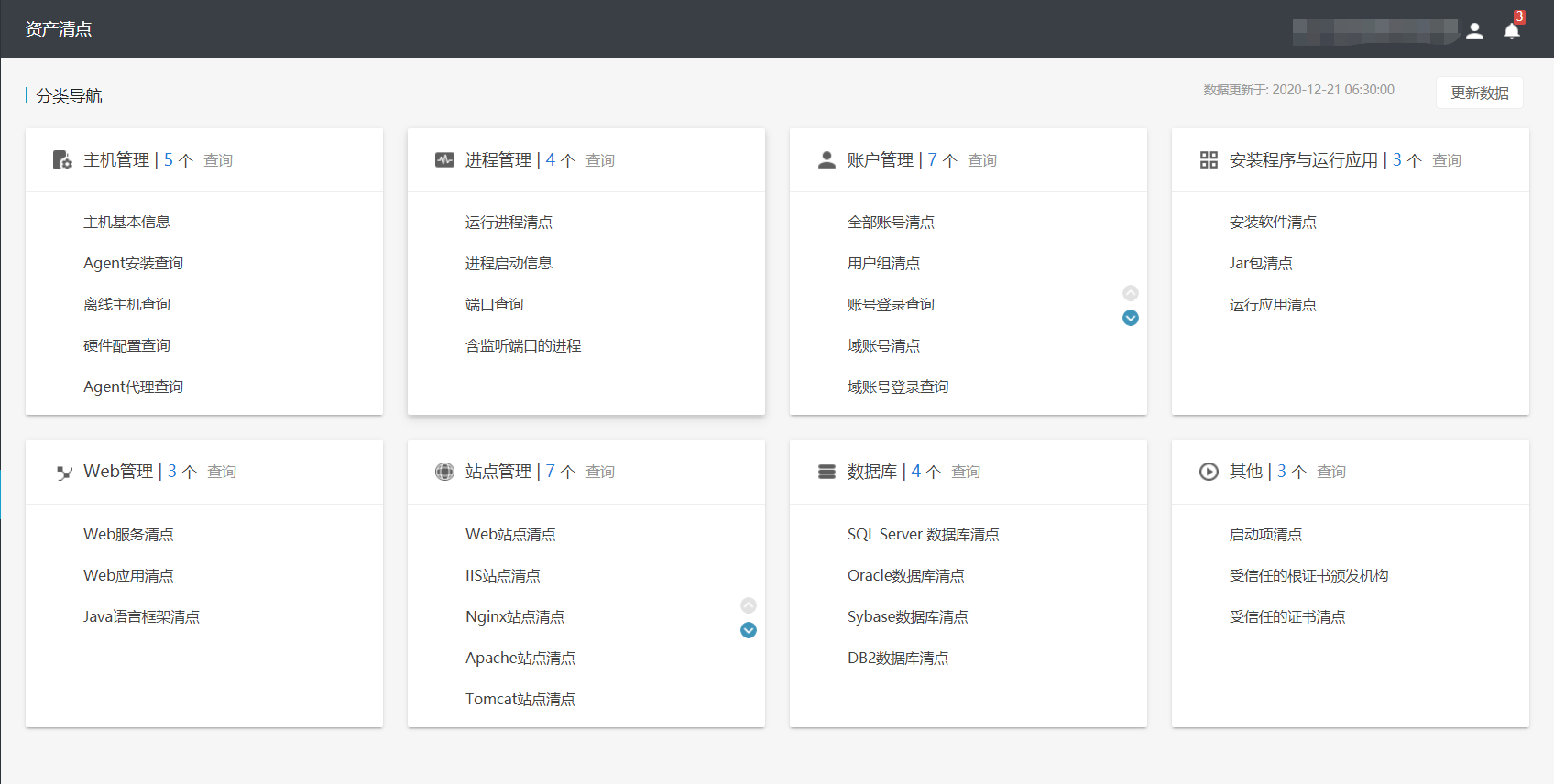 资产清点(Asset Inventory),致力于帮助用户从安全角度自动化构建细粒度资产信息,支持对业务 层资产精准识别和动态感知,让保护对象清晰可见。使用 Agent-Server 架构,提供10余类主机关键资产清点,200余类业务应用自动识别,并拥有良好的扩展能力。