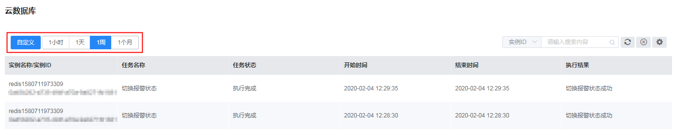 按时间段查询日志:在任务中心页面,选择待查询时间段内的操作日志。