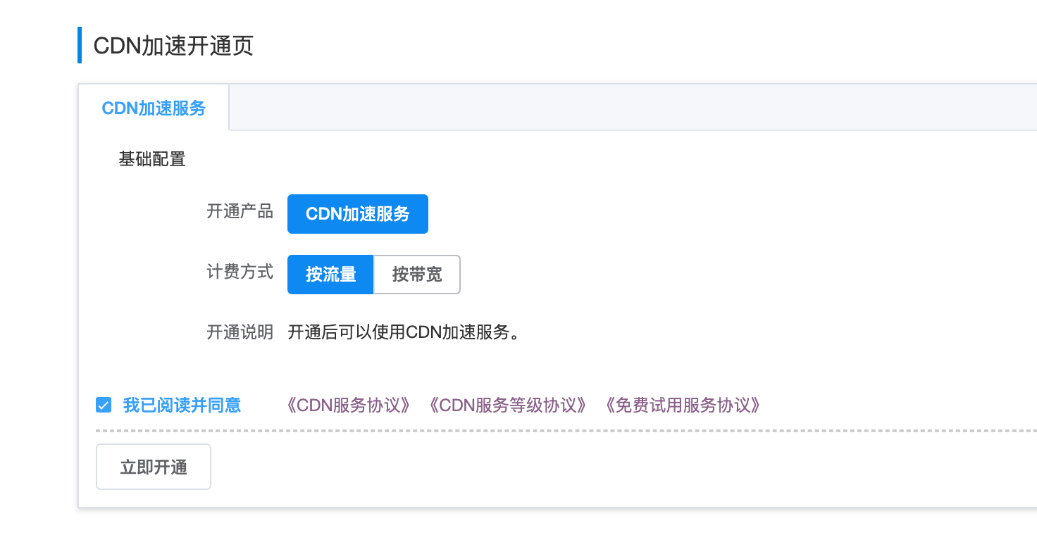 开通业务时,初次选择计费类型,可选择'按流量'即为日流量计费;也可选择'按带宽'即为日带宽峰值计费。