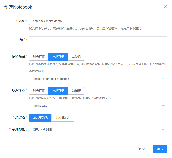 存储路径:本地存储:/mnist-code/mnist-notebook/(存放Notebook训练代码的路径)