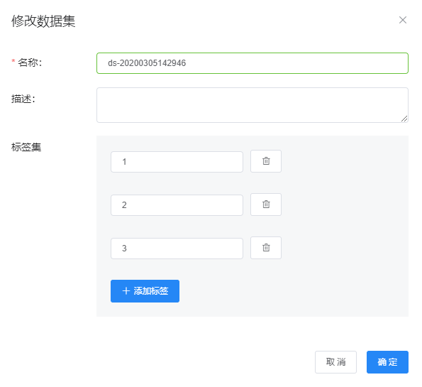 点击上方“修改”按钮,弹出“修改数据集”对话框。