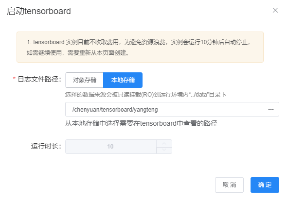 为避免资源浪费,tensorboard实例会运行10分钟后自动停止,如需继续使用,需要重新从版本详情页面创建。