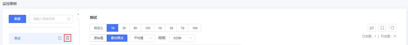 单击当前监控面板右侧的“”,可删除当前监控面板。