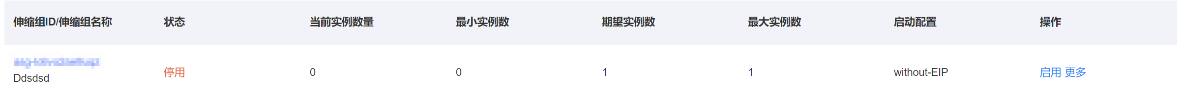伸缩组创建完成后,返回伸缩组页面,单击待启用的伸缩组后的“启用”。