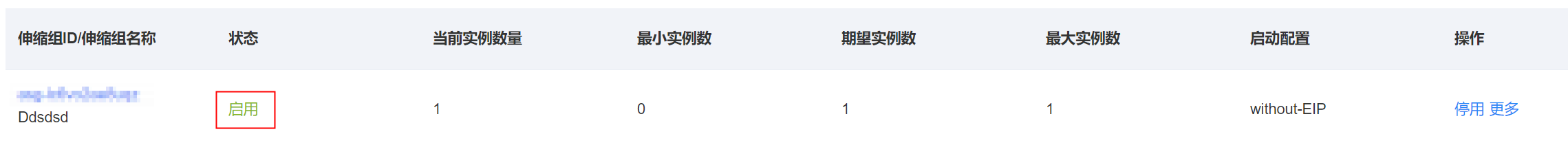 操作完成后,可以查看到伸缩组状态为“启用”。