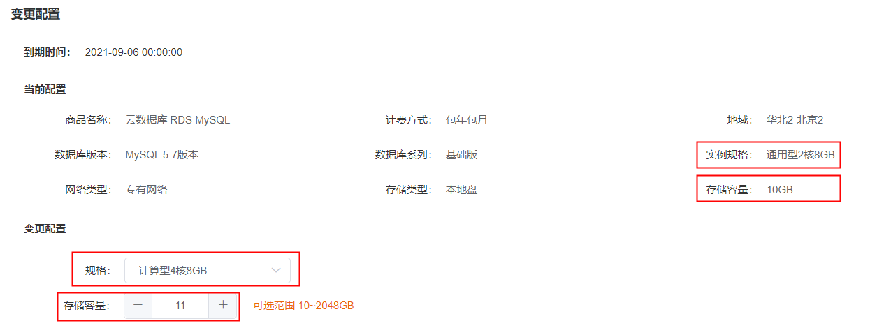 变更配置支持将实例现有的规格升配降配和磁盘扩容。