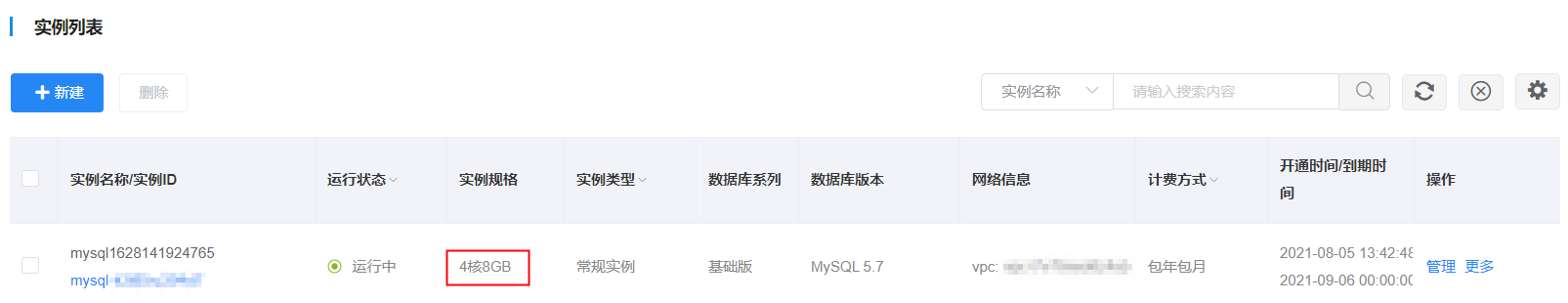 返回示例列表页面查看实例规格,确认变更完成。