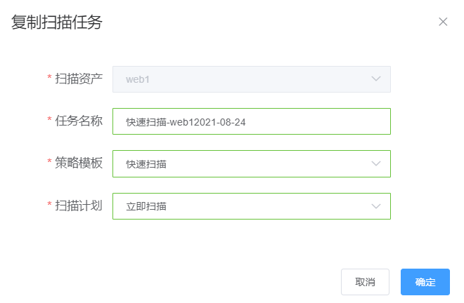 如果需要为同一个资产创建多个扫描任务,可以通过复制已有扫描任务来创建新的任务。