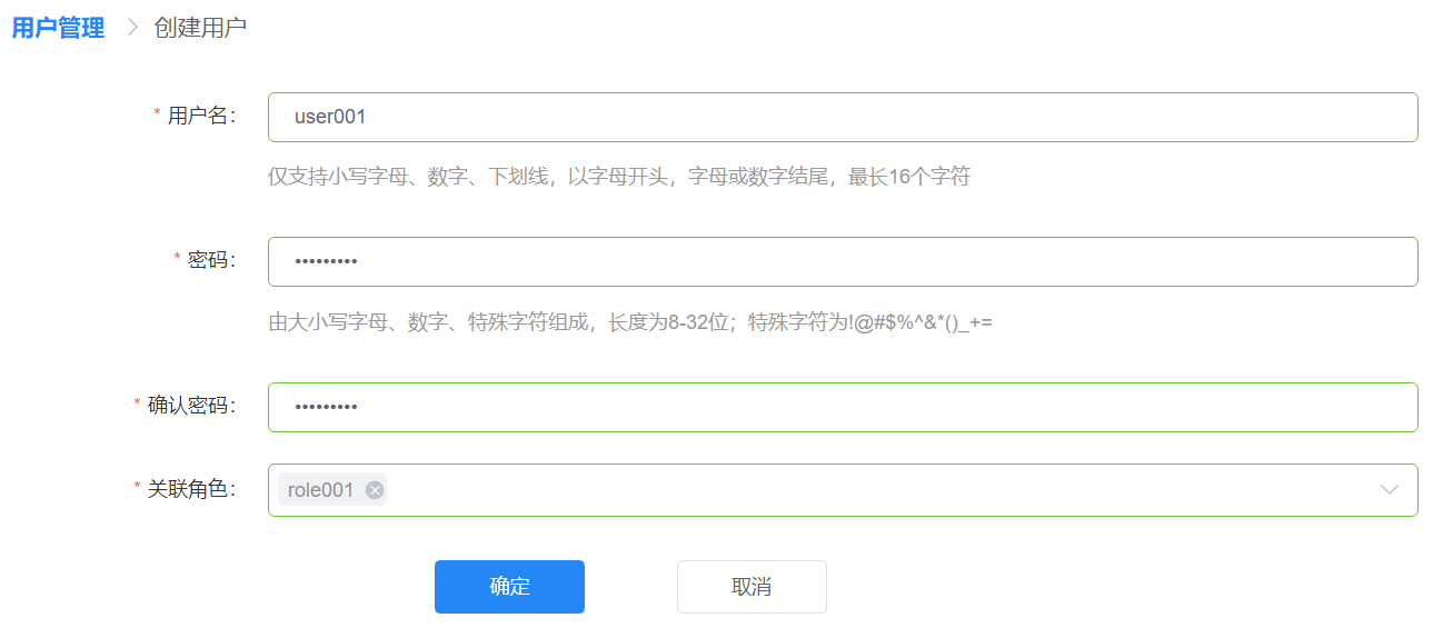 选择“用户列表”页签,可查看所有用户信息,点击“创建用户”按钮,进入创建用户页面。