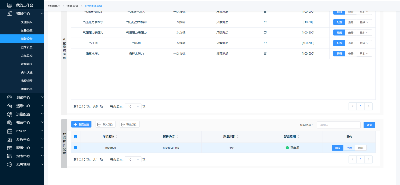 第二步:进入【接入配置】变量配置页面,进行该设备的接入点及边缘网关配置。