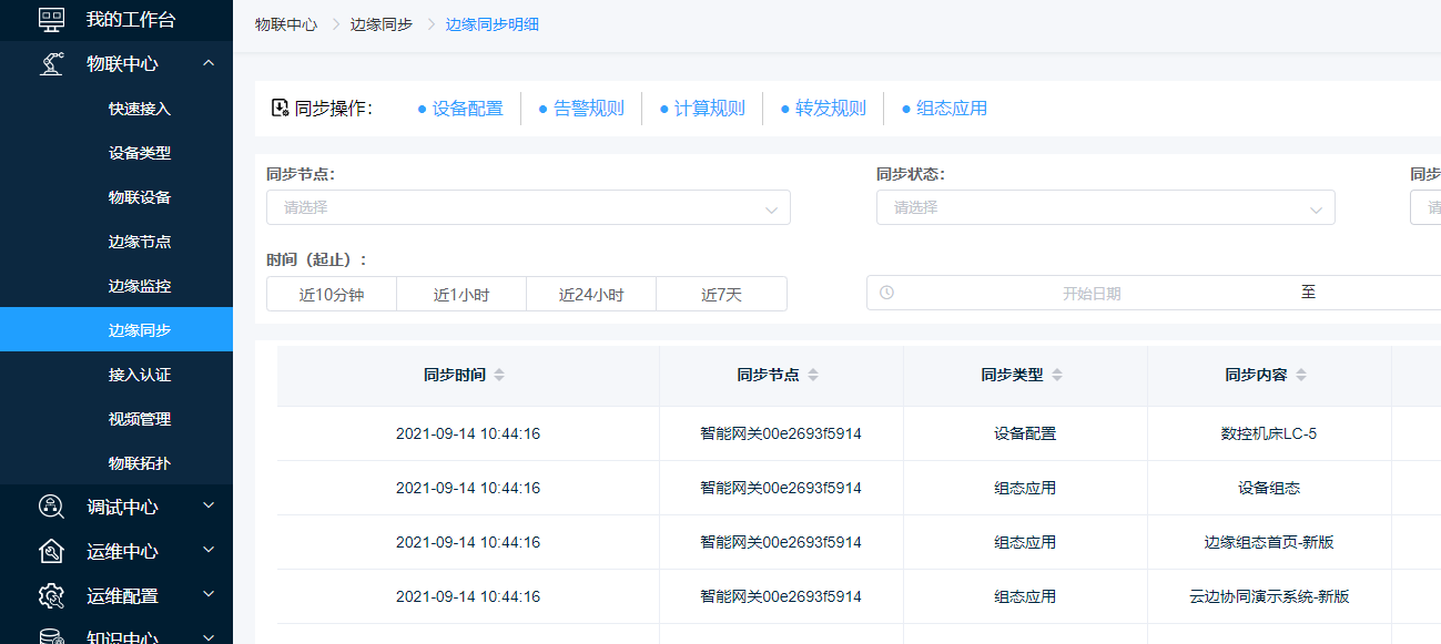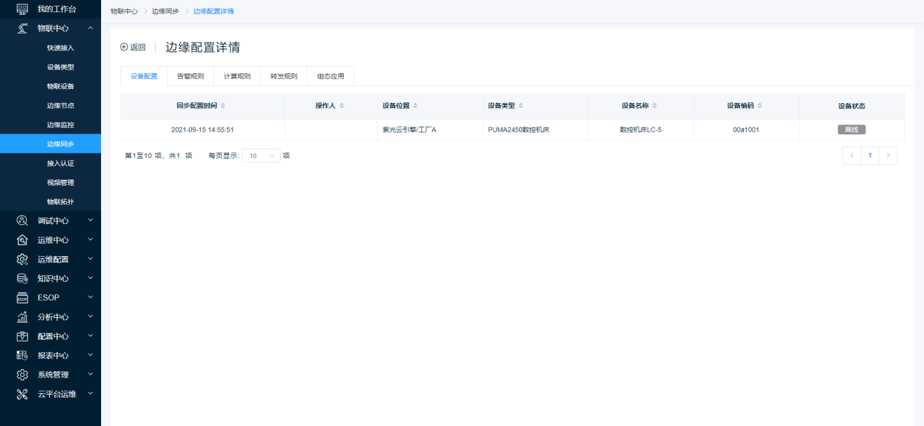 选择一条下发日志点击【边缘配置详情】,跳转边缘配置详情页,显示选中下发信息对应的网关配置详情页。