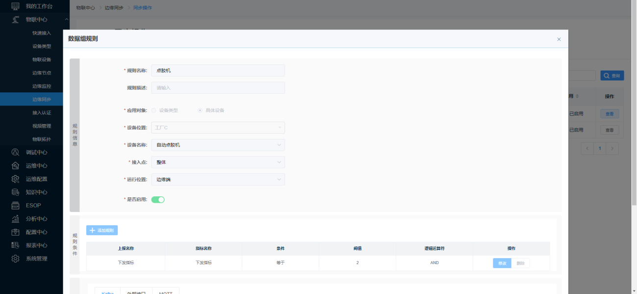 显示运行位置在边缘端的数据组规则,并对其进行下发。