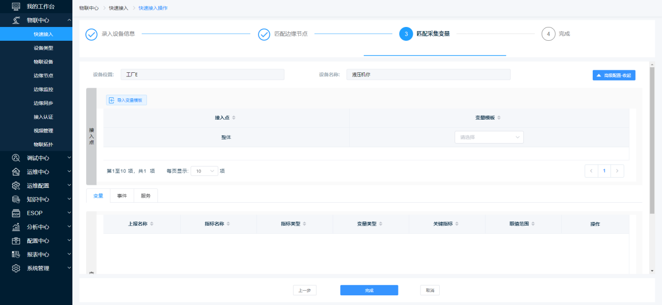 进行配置,后点击【完成】按钮完成采集变量设置跳转至【完成】页面。