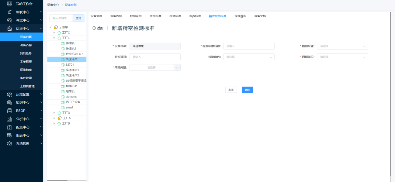第一步:点击【添加精密检测】按钮跳转至精密检测标准新增页面。