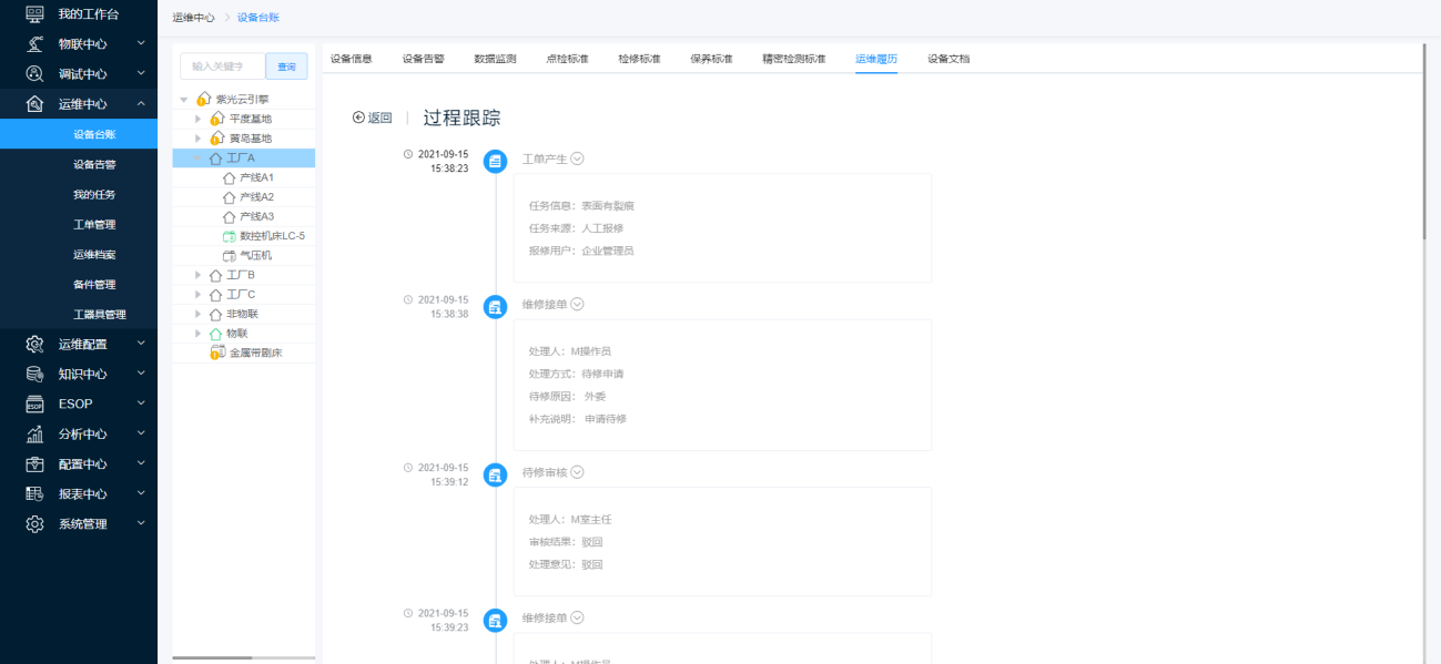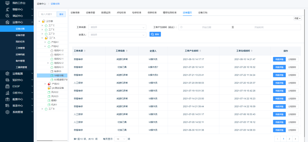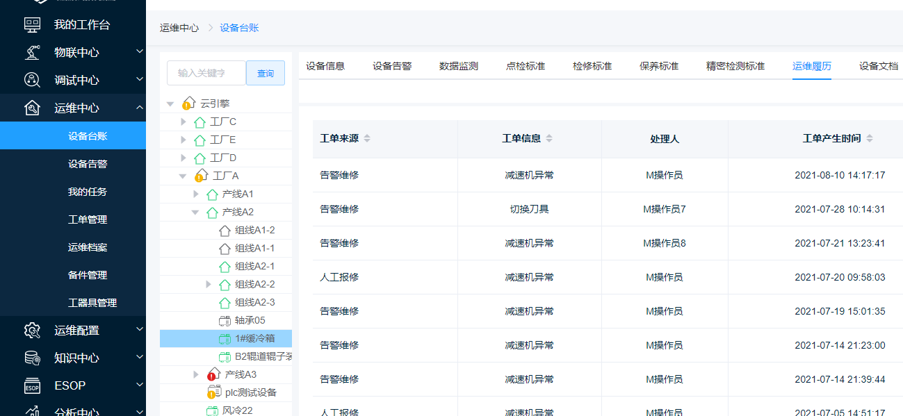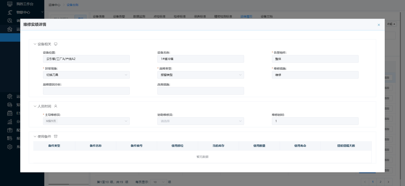 点击运维履历,查看当前设备的所有已完成工单信息。