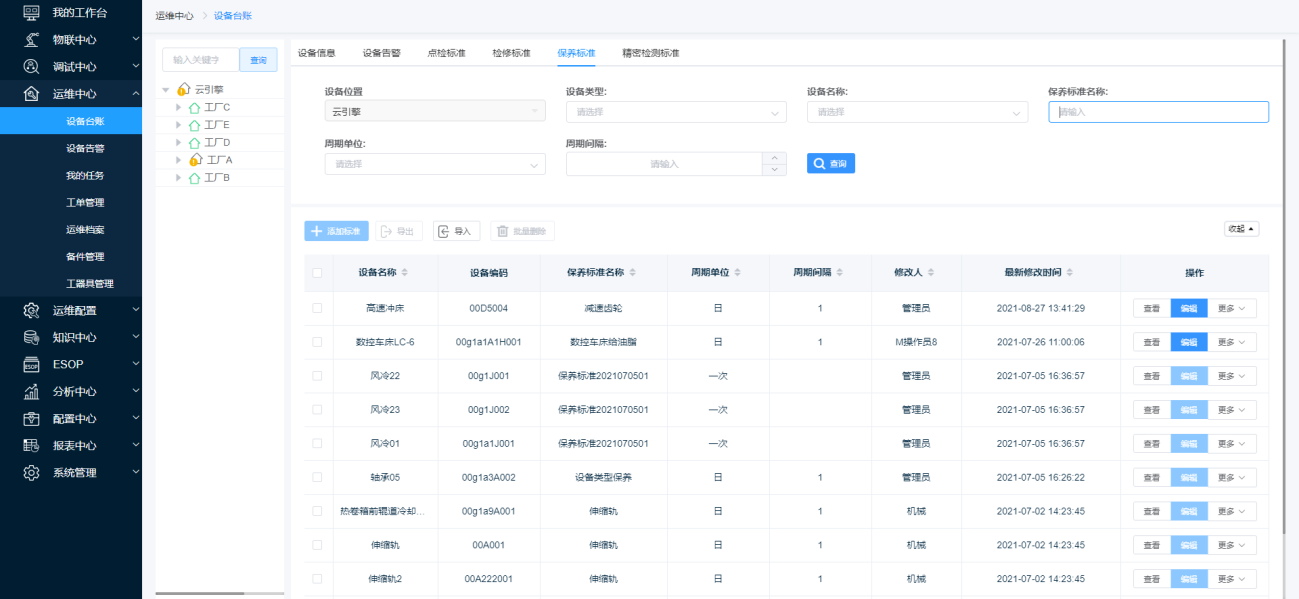 第一步:选择需要查看的保养标准的域,点击【保养标准】,跳转至【保养标准】页面。