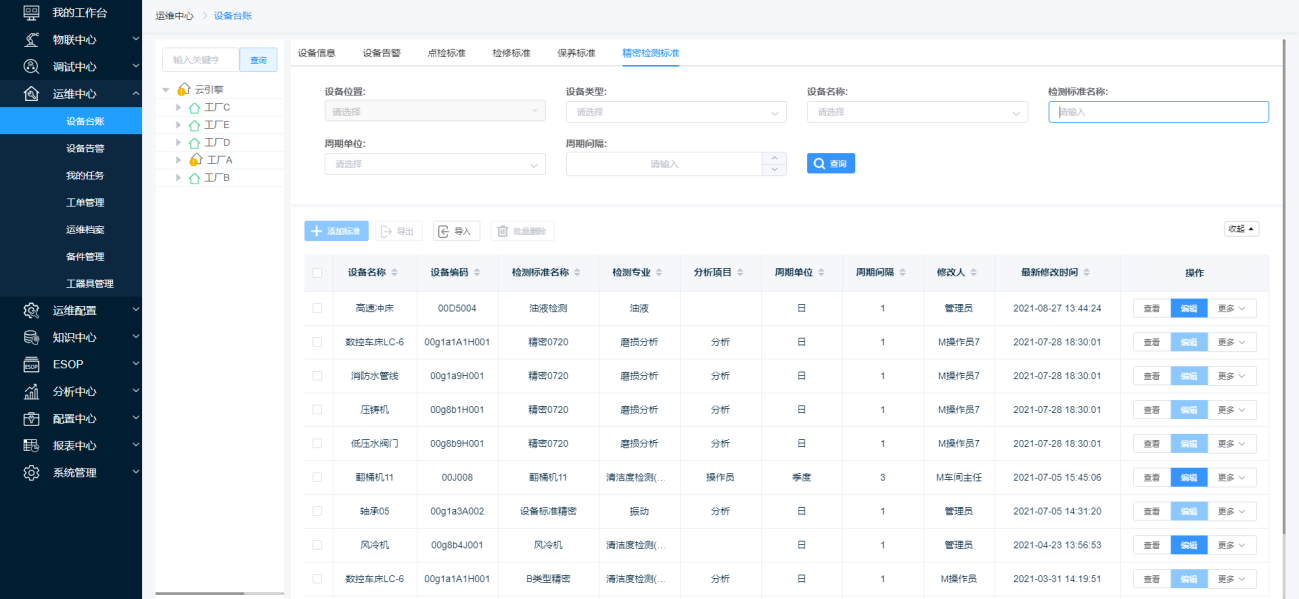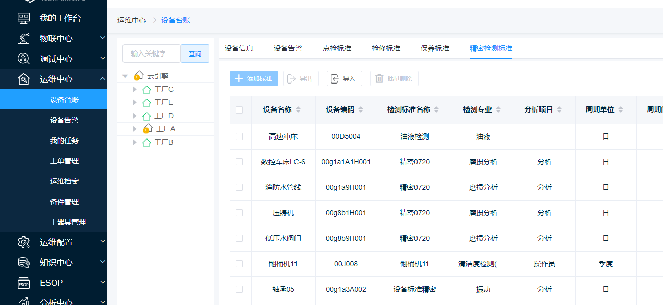 第一步:选择需要查看的精密检测标准的域,点击【精密检测标准】,跳转至【精密检测标准】页面。