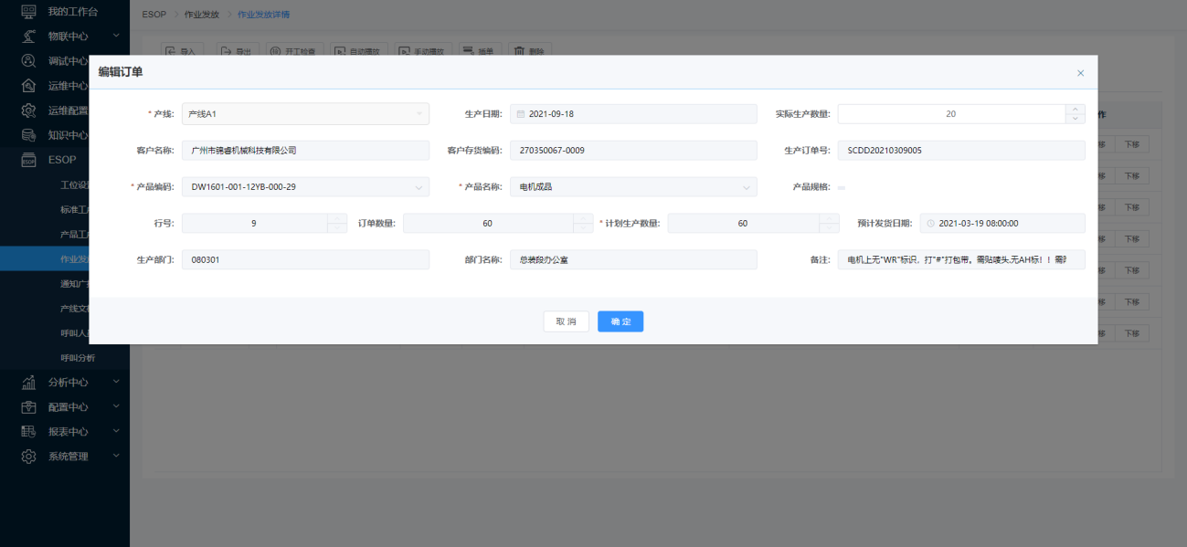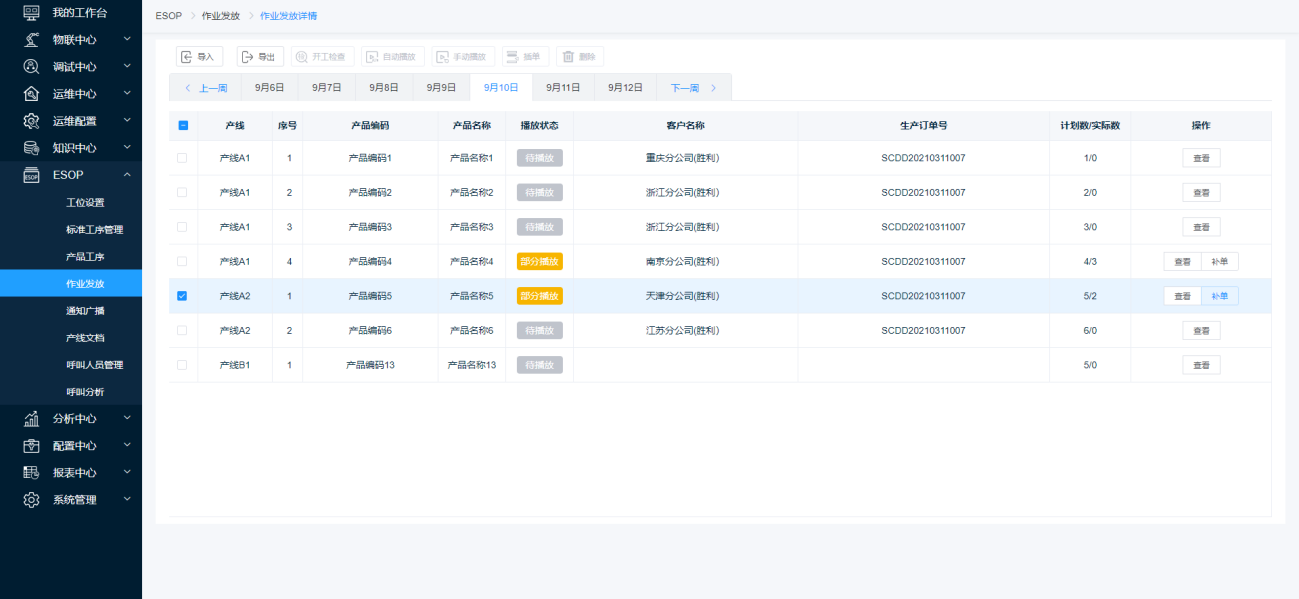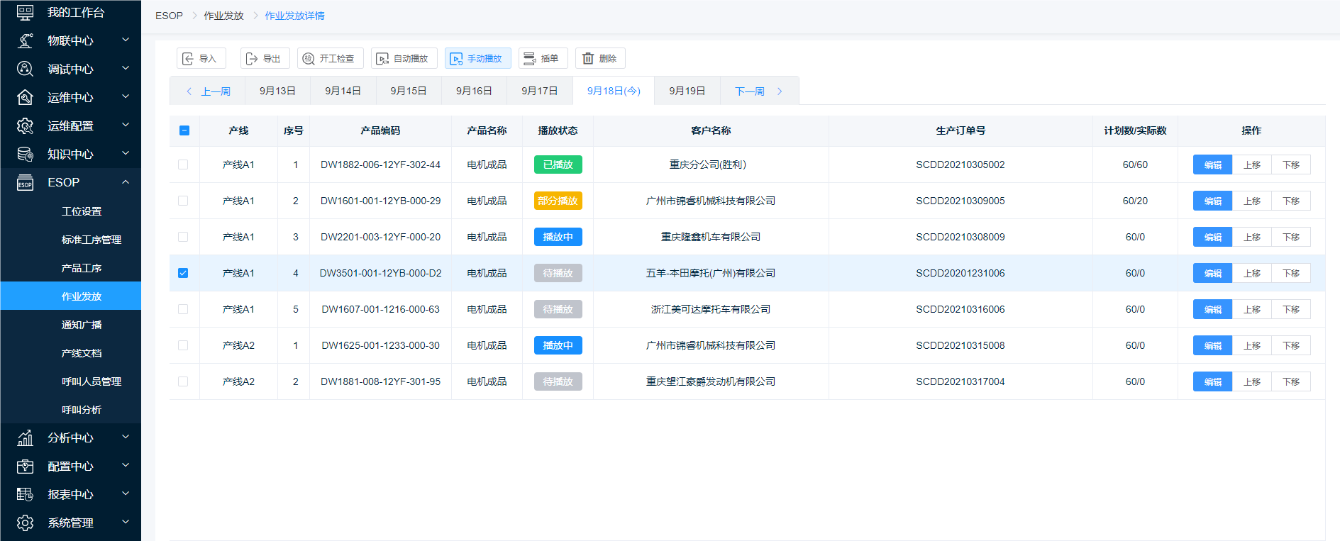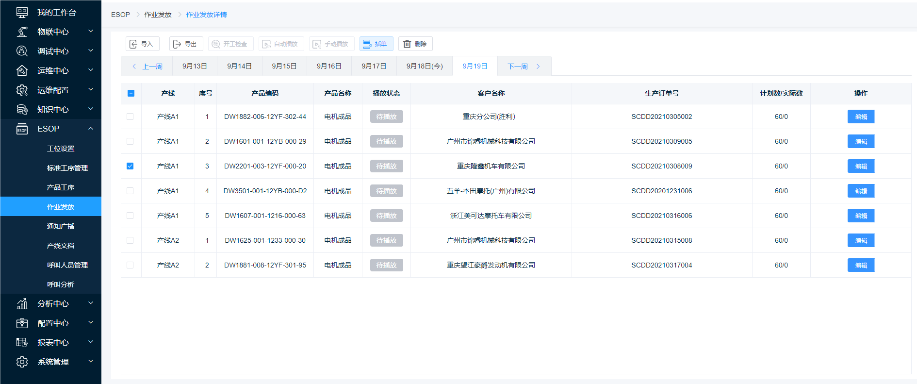作业发放模块用以导入生产订单,并发送产品工序,用户可在此模块对订单进行编辑、导入、导出、插单、删除、修改数量的操作。