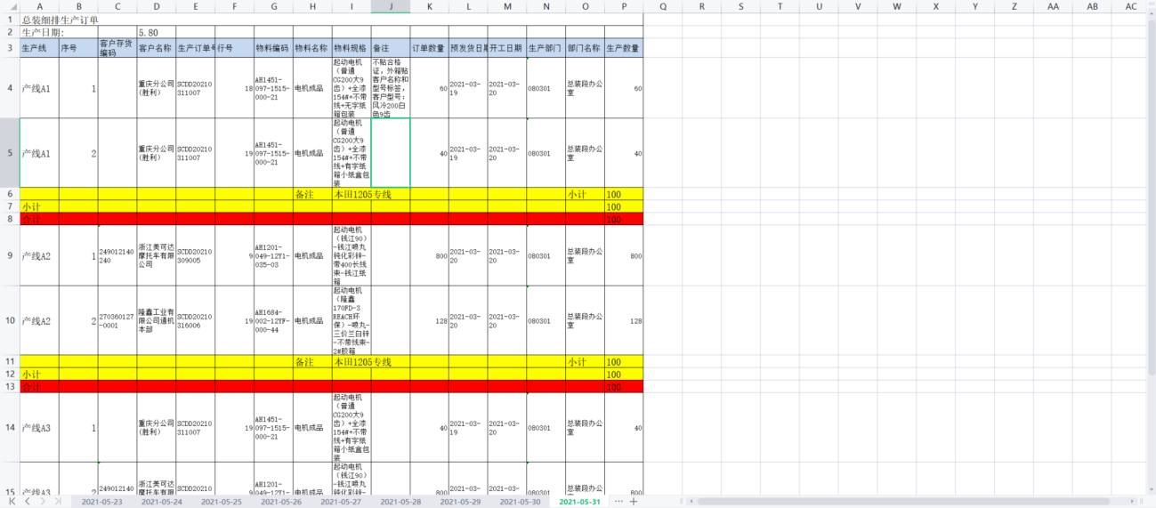 Sheet名为日期名,只导入该文件中未来日期的数据(当日无订单时,可进行导入);