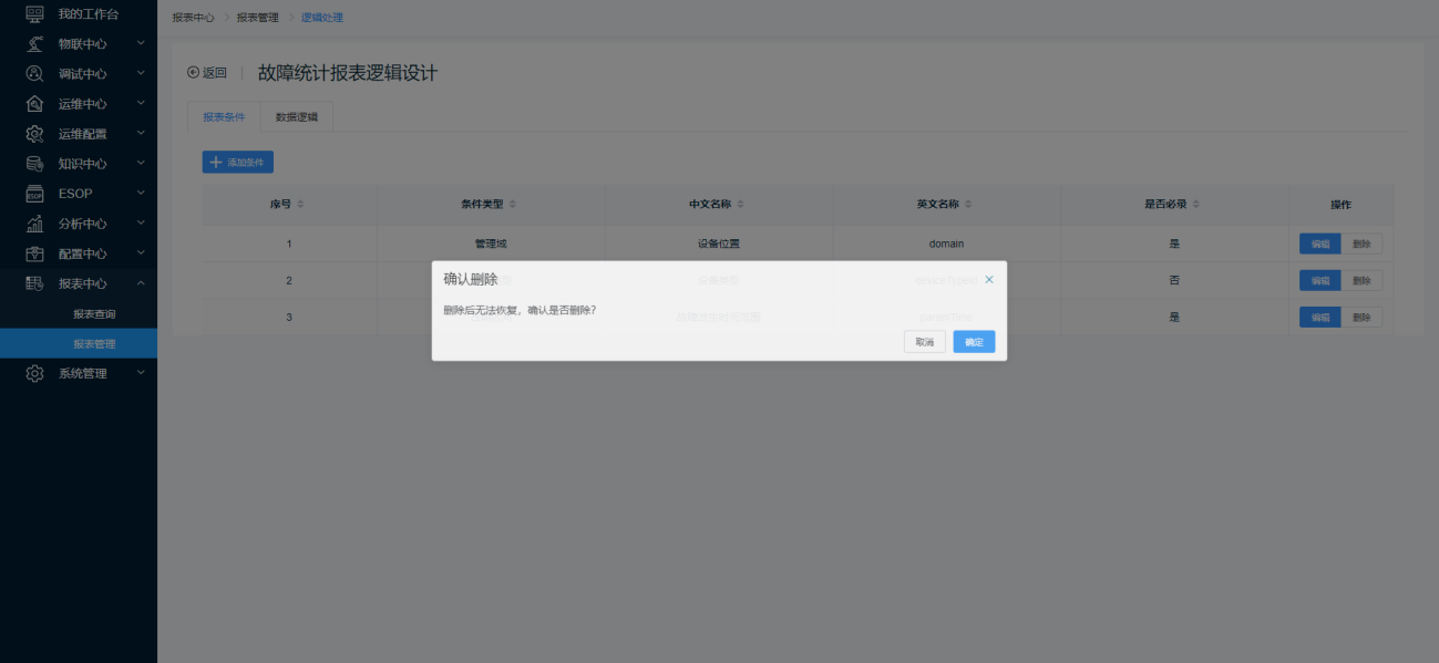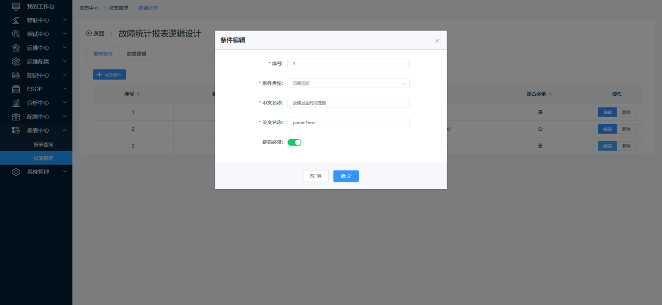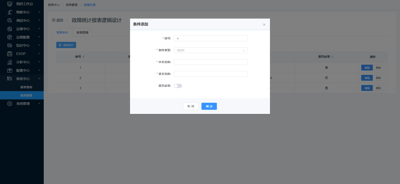 2)点击【编辑】在条件编辑框中进行序号、条件类型、中文名称、英文名称的编辑点击确定完成编辑。