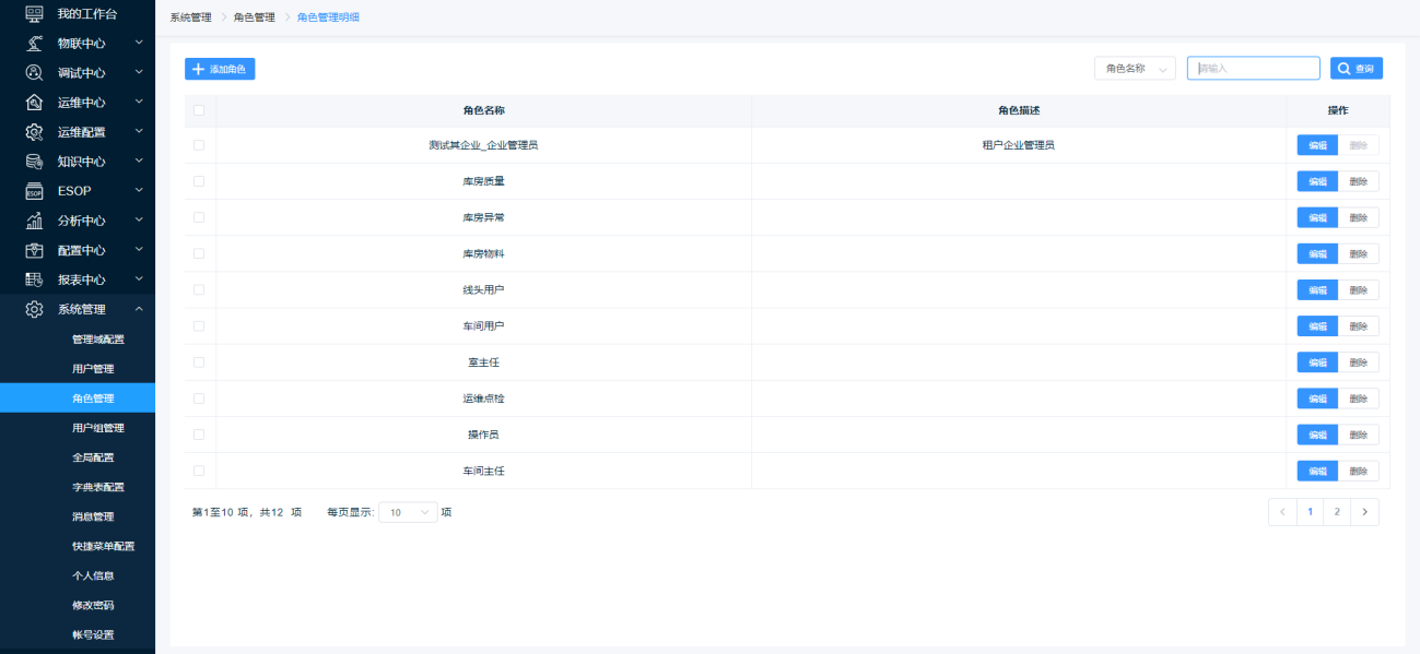 选择需要编辑的角色点击【编辑】按钮跳转至【角色编辑】页面更改角色信息后,点击【保存】按钮保存更改后的角色信息。