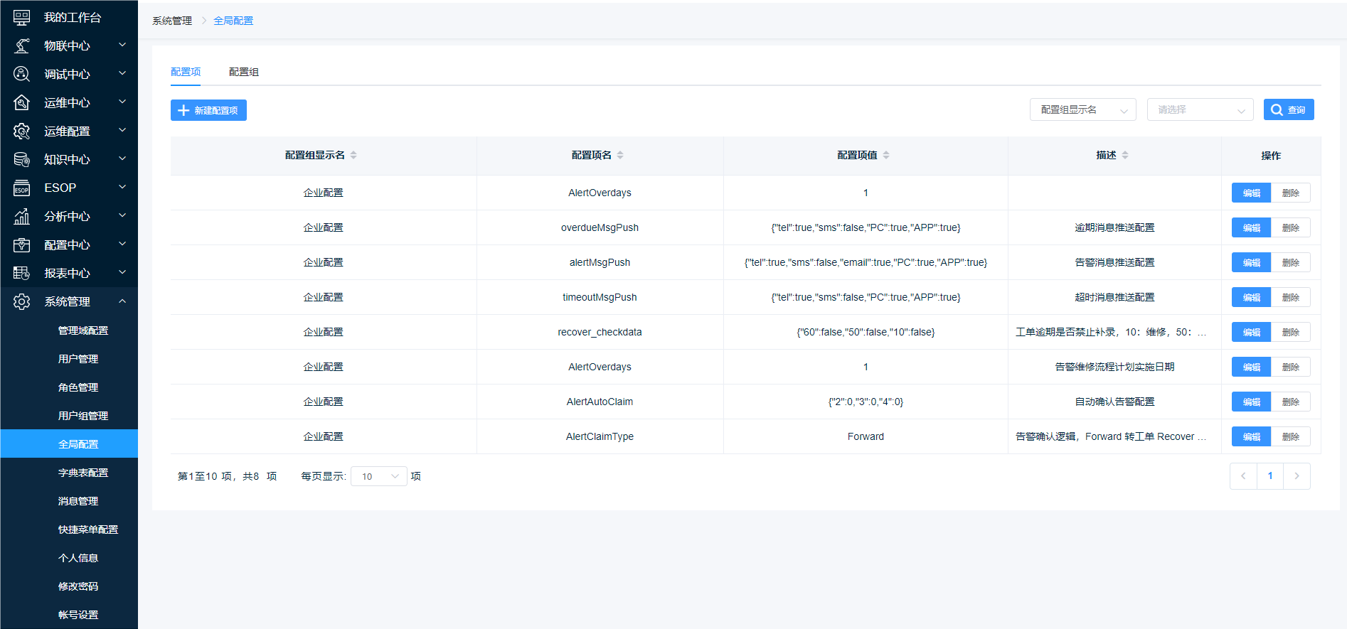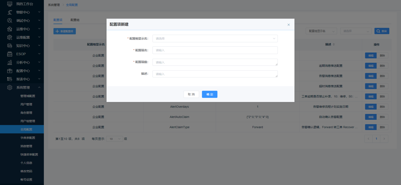 系统默认为企业分配全局配置“AlertClaimType”默认配置项值为“Forward”使用告警转工单流程,若告警确认后不需要转工单将配置项值设置为“Recover”。