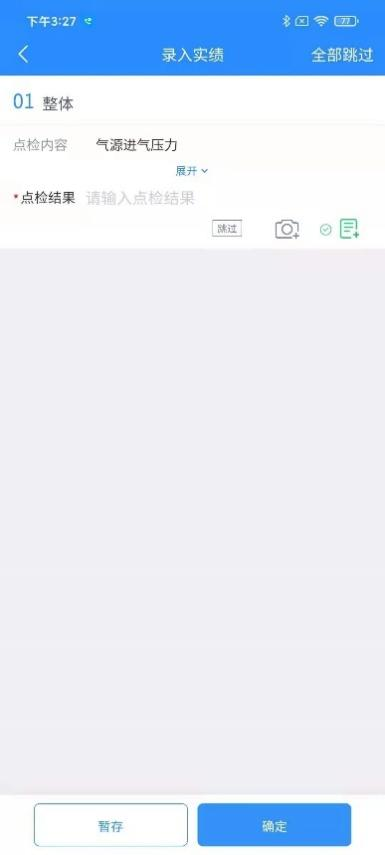 选择需要处理的点检任务选选择跳过扫码直接进入录入实绩页面。
