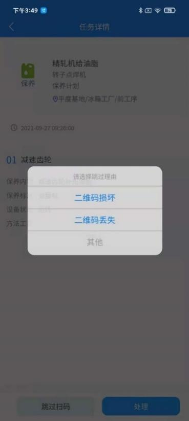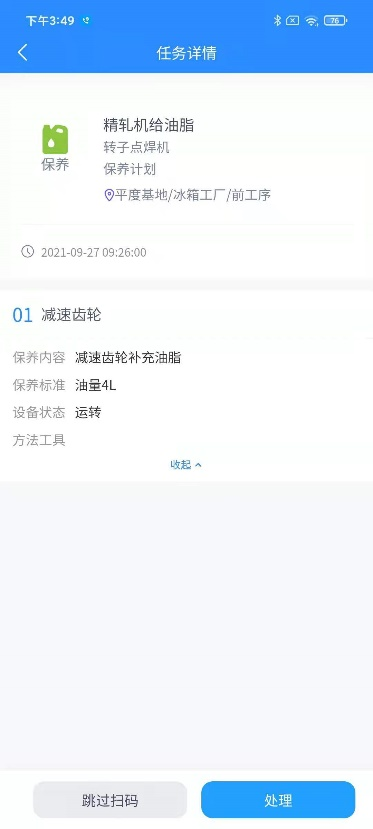 选择需要处理的保养任务选选择跳过扫码直接进入录入实绩页面。