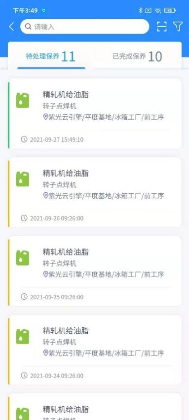 第二步:选择当前需要处理保养任务扫描设备二维码,成功匹配进入录入实绩页面,