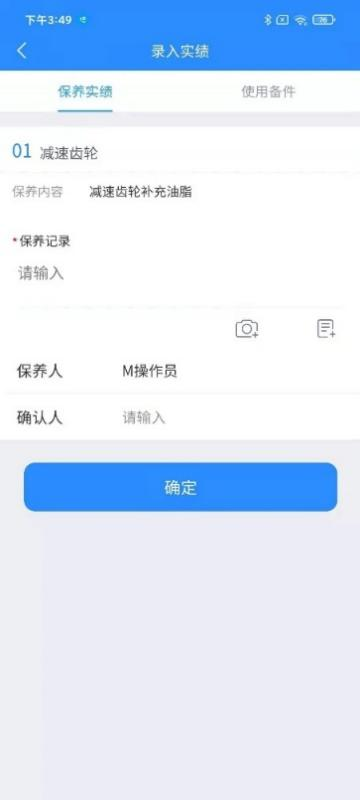 第三步:录入保养实绩;点击【确定】按钮完成保养实绩的录入操作。