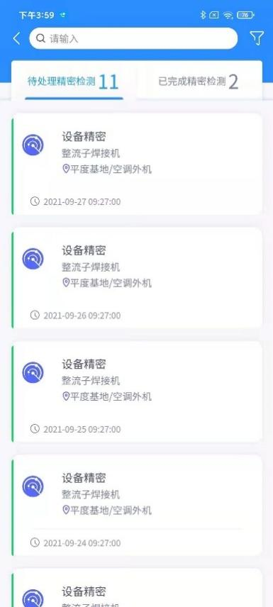 第二步:选择当前处理任务节点为“精密检测”的点处理,跳转至精密检测页面。