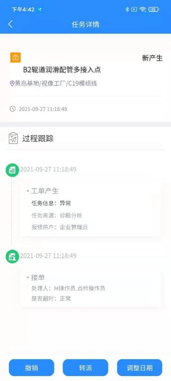第二步:选择需要发起委托的点检排程、录入委托时间,点击【确认】按钮完成点检委托的创建。