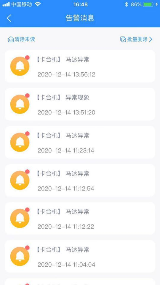 第一步:点击【人工告警】按钮,页面跳转至设备列表页,选择或扫描需要生成告警的设备,页面跳转至【人工告警】页面。