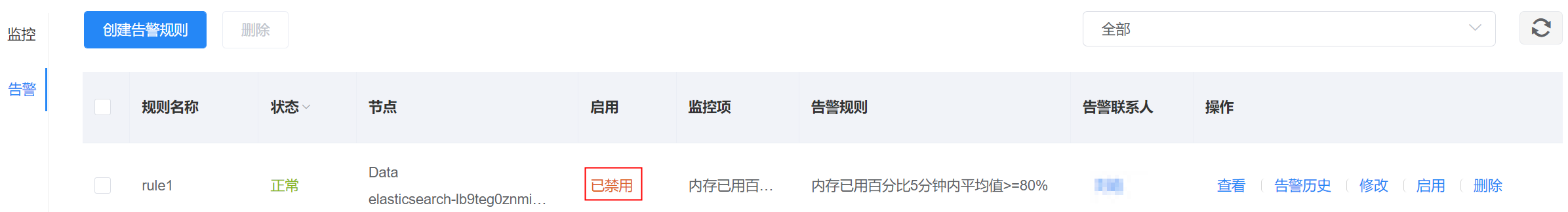 当需要暂时关闭告警规则时,可以先禁用告警规则,等到需要时再启用。