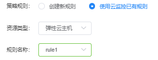 使用云监控已有规则:选择云监控产品中已创建的告警规则。需输入监控资源的类型、告警规则名称。