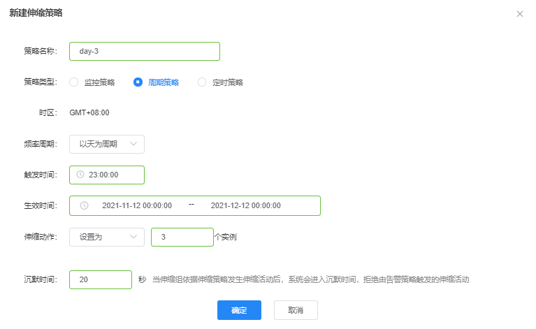 以天为周期:需要输入每天触发伸缩动作的时间。
