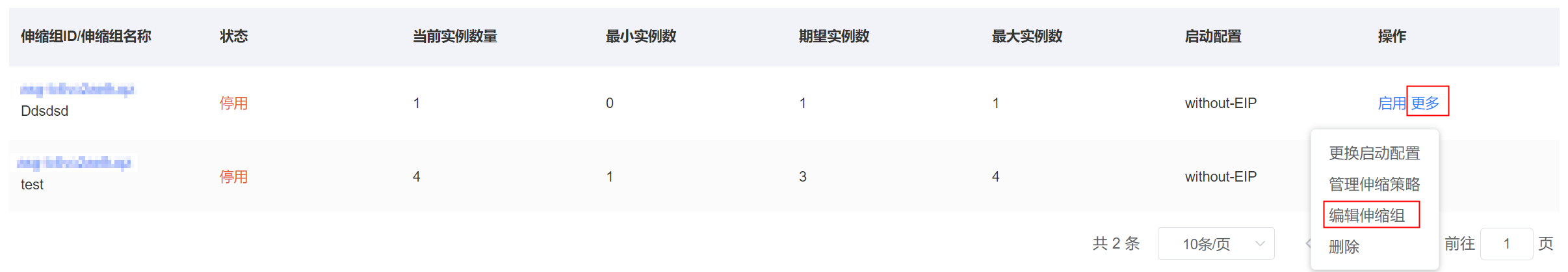 编辑伸缩组前,请先停用伸缩组。