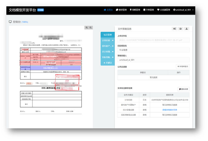 支持PDF、excel、word、网页等文档的智能解析,利用领先的机器学习技术,快速训练模型,与flowbot融合,反馈回新的数据模型,实现模型优化和迭代