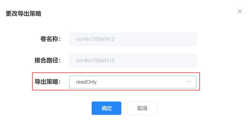在接合路径页面,单击待修改的路径后的“更改导出策略”,进入更改导出策略页面。