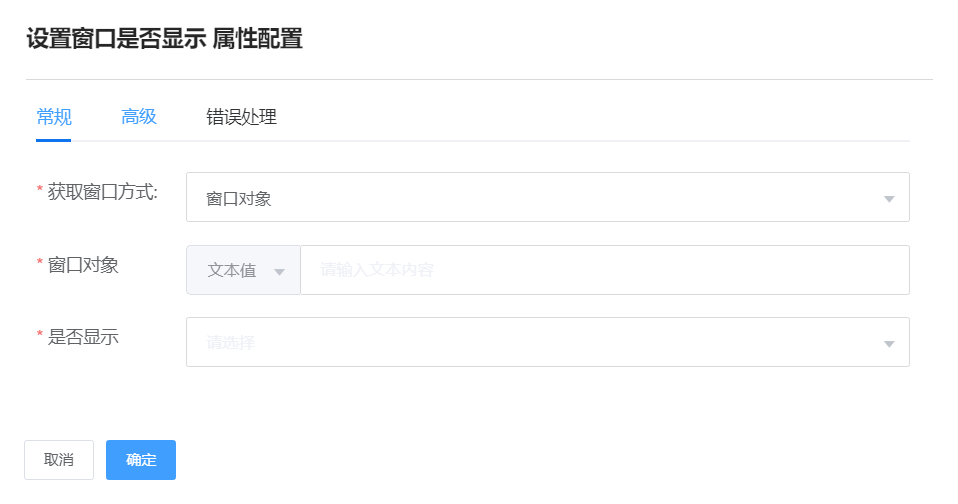 是否显示:显示窗口、隐藏窗口两种选择。
