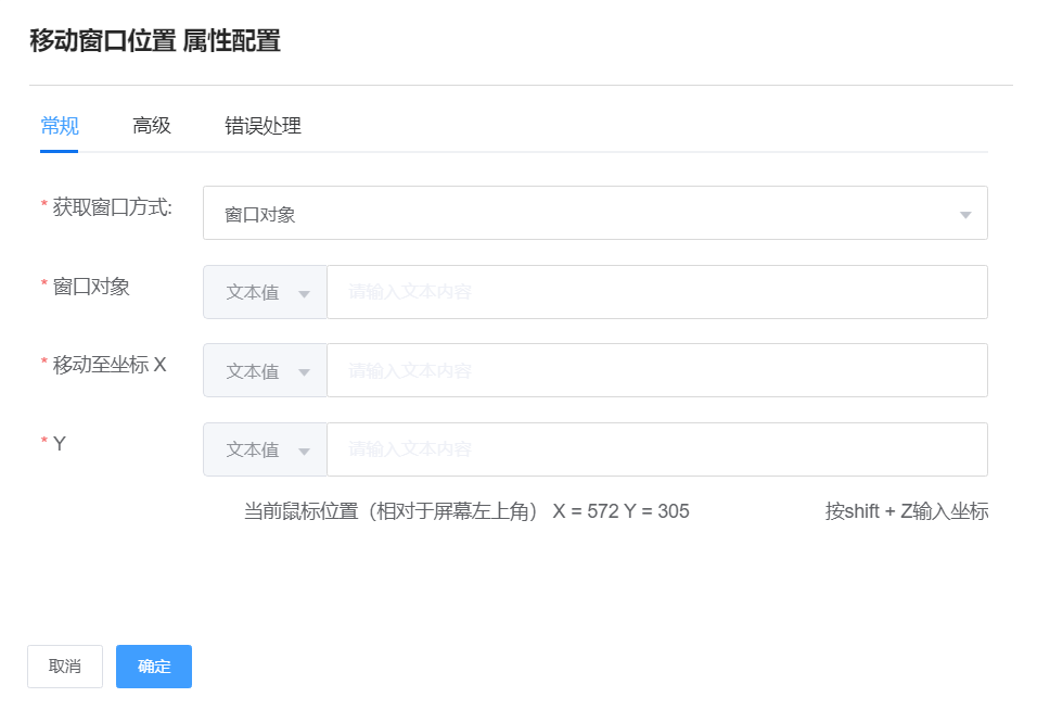 移动至坐标X、Y:设置位置的坐标。使窗口移动至设置好的坐标。