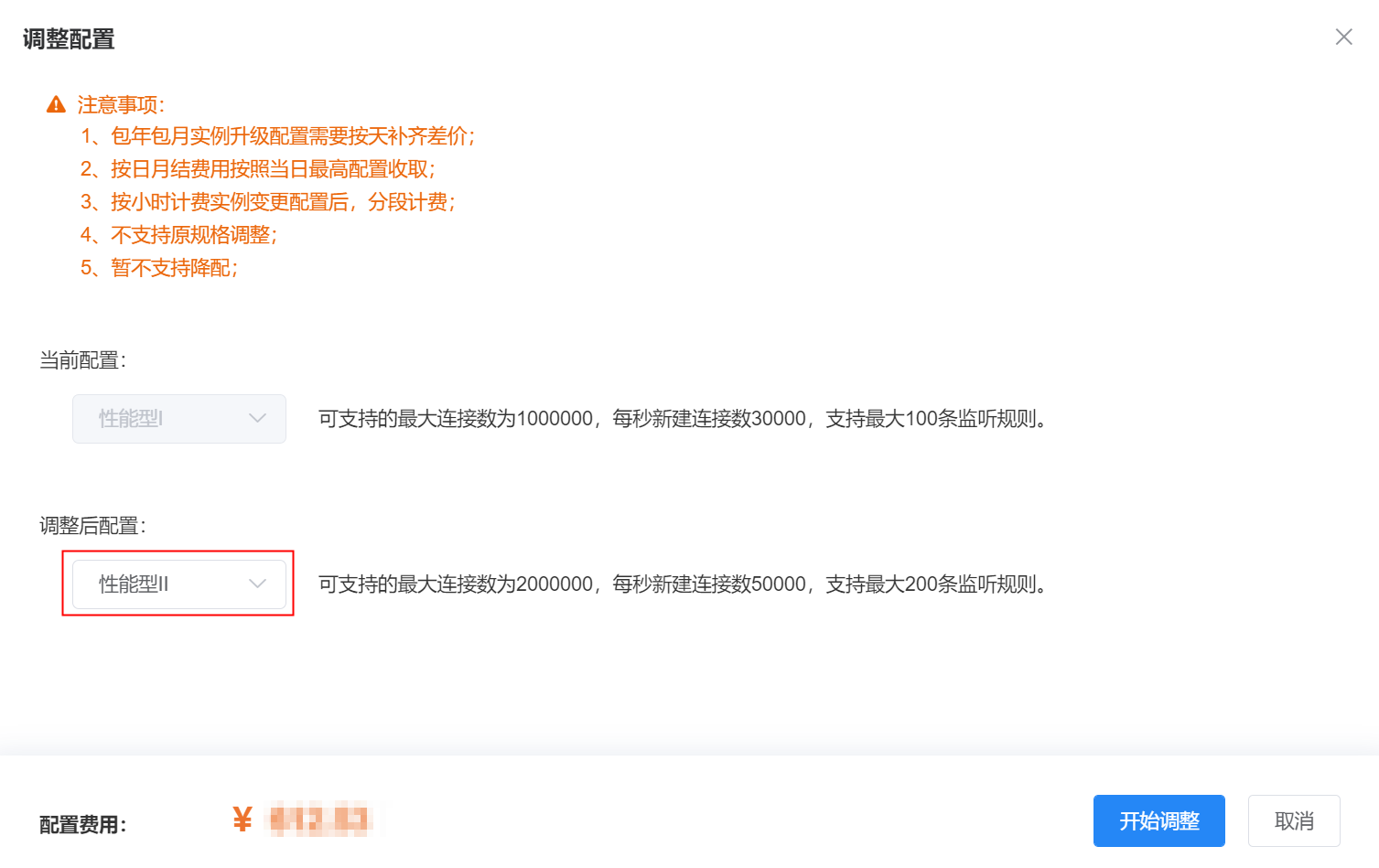 调整配置后,计费方式如下:包年包月实例升级配置需要按天补齐差价。