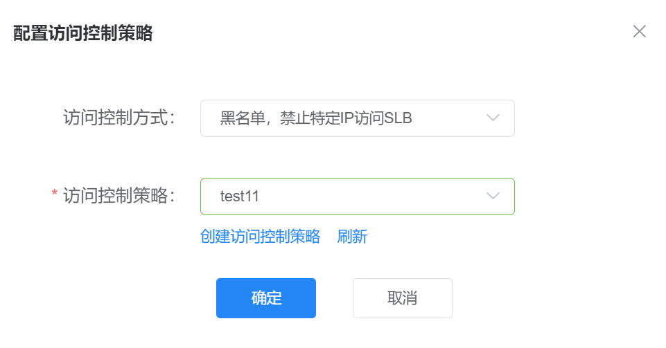 在弹出的配置访问控制策略页面,选择待绑定的访问控制策略,单击“确定”。