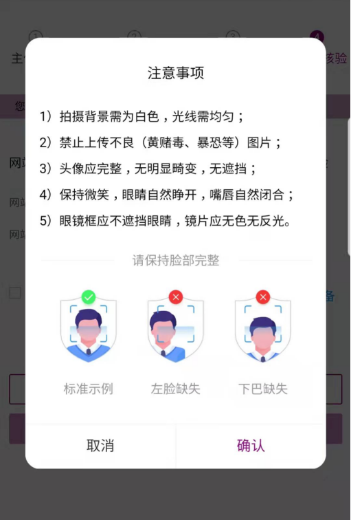点击“去核验”进入核验窗口,按要求录制相应视频并提交。